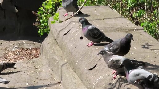 Голубиная очередь за кормом на бордюре (или поребрике)
