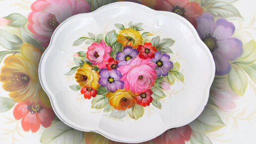 Жостовский поднос. Выправка (Второй слой). Розы на белом фоне. Художник Лариса Гончарова из Жостово