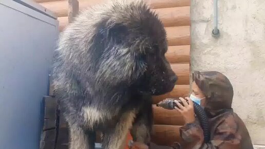 Олимп, хотя и могучий представитель кавказских овчарок, но против приятностей купания не устоит