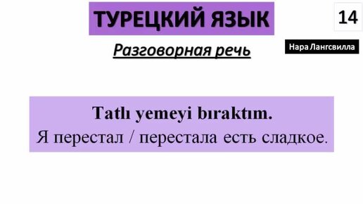 14. Турецкий язык с Нара Лангсвилла. Предложение Tatlı yemeyi bıraktım.
