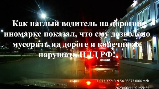 Как наглый водитель на дорогой иномарке показал, что ему дозволено всё на дороге,мусорить и нарушать ПДД РФ! Видео от подписчика.