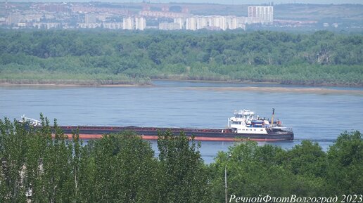 Теплоход ВОЛГО-ДОН 5075 идет вверх по Волге мимо Волгограда.