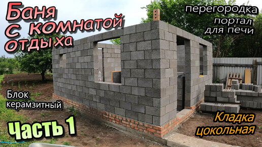 Баня с комнатой отдыха \ Кладка цоколя \ Керамзитного блока \ Перегородка и портал для печи \ Часть 1 (май 2023)