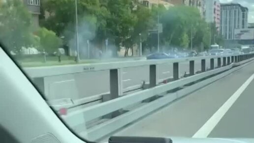 На Аминьевском шоссе прямо посреди дня водители перекрыли дорогу и устроили дрифт.