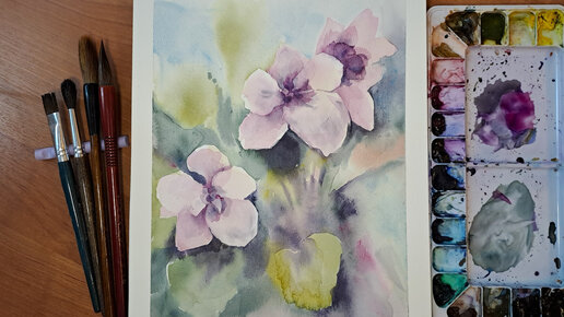 Рисую милые цветочки акварелью