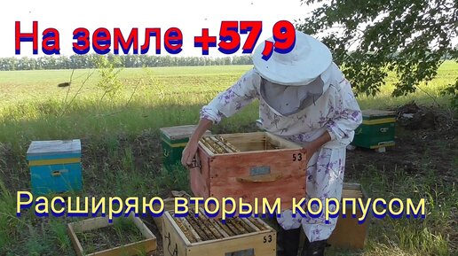 На почве +57,9 градусов пора расширять.Расширение улья вторым корпусом.