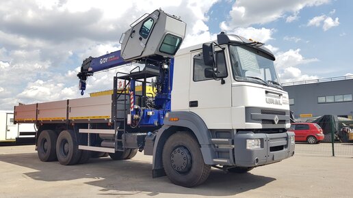Бортовой автомобиль УРАЛ (6х4) с КМУ DY SS1956 ACE CAB, кабиной оператора и переворотными опорами.
