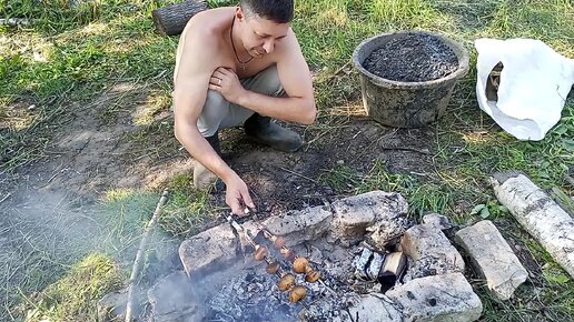 Шампиньоны на углях, костре