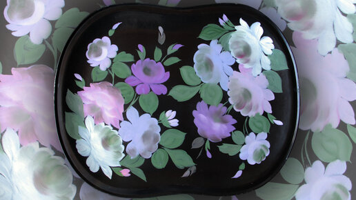 Жостовский поднос. Замалевок (Первый слой). Цветы на черном фоне. Художник Лариса Гончарова из Жостово