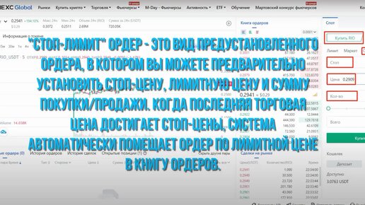 Mexc Global. Cпотовый рынок. Открытие, закрытие сделок. Лимит. Маркет. Стоп - Лимит. Кошелек.