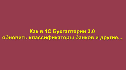 Как в 1С Бухгалтерии обновить классификатор банков и другие.