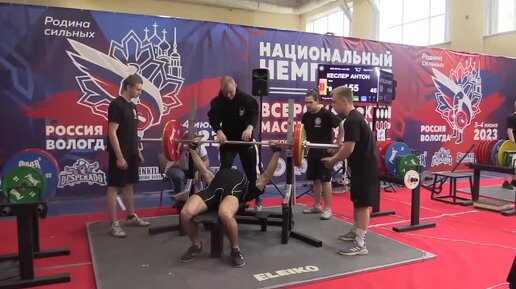 Далее: Кеслер Антонт жим 160кг Национальный Чемпионат GPA, Вологда, 03-04.06.2023 - Помост 1 (720p)