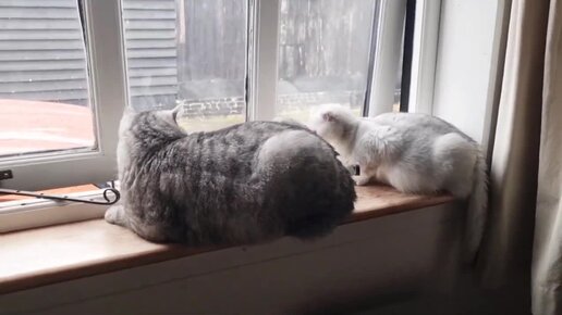 У кошек утреннее свидание на окошке 🥰❤