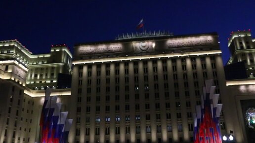 Министерство Обороны на Фрунзенской набережной в ночи дня России. 12 июня 2023.
