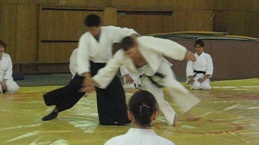 Бросок фронтальным входом в айкидо (Шёмэн Ириминагэ) в исполнении сэнсэя Хига Риоичиро (4-й дан Ёсинкан Айкидо).