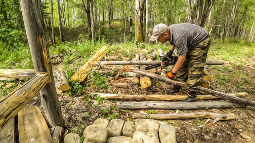 ЗЕМЛЯНКА У ОЗЕРА. ДЕЛАЮ СКАМЕЙКУ В БЕСЕДКЕ. САЛАТИК В ЖАРКИЙ ДЕНЬ!!!