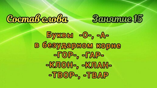 Буквы -О-,-А- в безударных корнях -гор-, -гар-, -клон-, -клан-, -твор-, -твар-