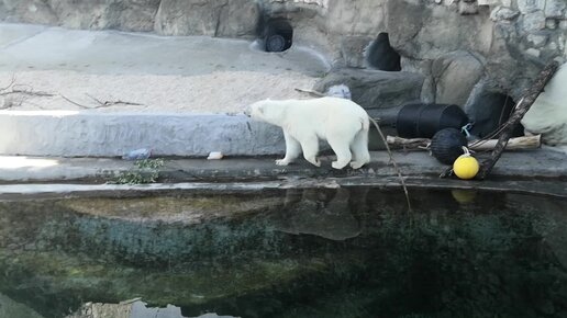 Белый медведь в зоопарке!