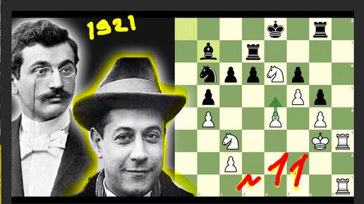 Игра №11 матча за шахматную 👑. Гениальный Капабланка одну за другой выигрывает партии у пока еще чемпиона мира Ласкера в Гаване, 1921, 1-0