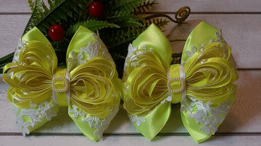 МК. Нежные и ажурные бантики из узкой ленты.