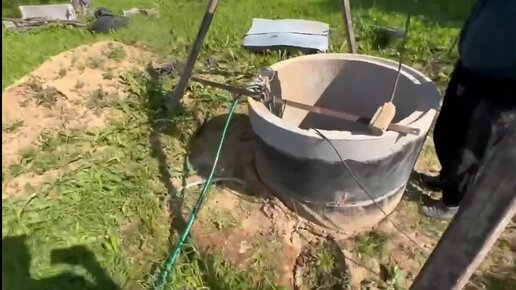 Колодец на глине, вода капелярная. Почему то 4 бригады до нас не смогли добиться чистой воды и очистить кольцо от глины.