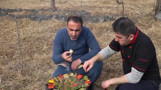 Невероятный Садж Кебаб на костре в Горах Азербайджана. Готовят два Брата