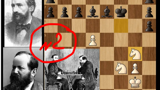 Партия №2 матча 1886 года в Нью-Йорке. Стейниц, играя белыми, проиграл Цукерторту в шотландском дебюте. Точность 83% и 86% соответственно