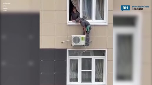 Бесстрашный монтажник устанавливал кондиционер на кронштейне в Воронеже