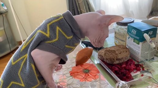 Столовым приборами кот Инка пока не научился пользоваться. Но десерт себе выбрать сам уже может