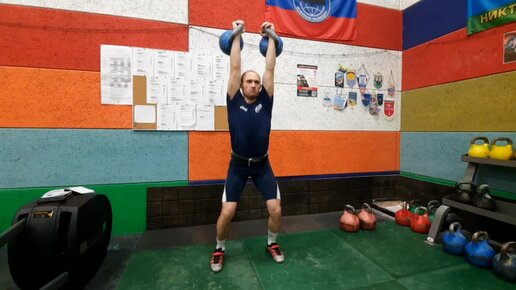 Длинный цикл: тренировка с гирями 16кг,20кг,18кг. Описание под видео.