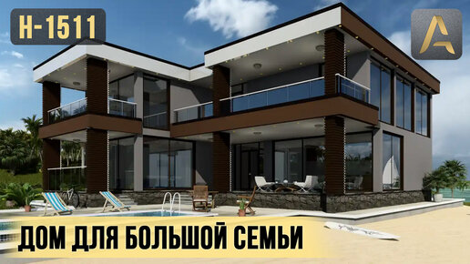 Классный дом в стиле Хай-Тек для большой семьи. Проект дома с бассейном, террасой и балконами