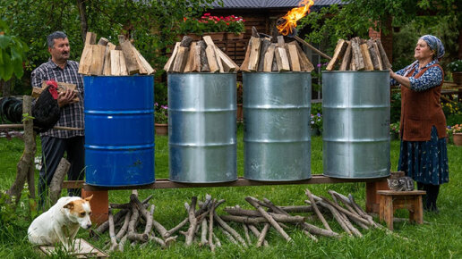 Изготовление Древесного Угля для Барбекю в Железных Бочках и Приготовление Бараньего Шашлыка