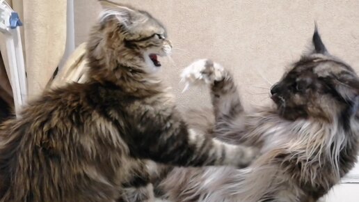 Котенок мейн кун Дакота и взрослая дама Шишок