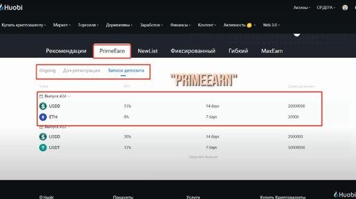 Huobi. Заработок. Нuobi Еarn. Пассивный доход. Автоинвестирование. Prime Earn. New List. Max Earn.