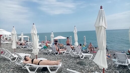 Пляж Sport Inn в Имеретинке, 14 июня, после ночного ливня вода в море холодная, но на удивление довольно чистая. Народ почти не купается.