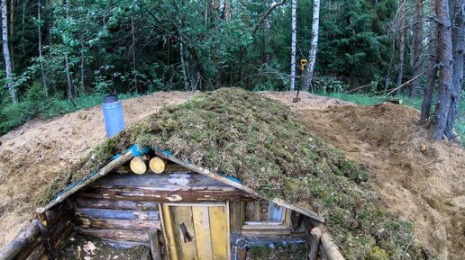 Заделал фасад в землянке. Обложил новую крышу мхом.