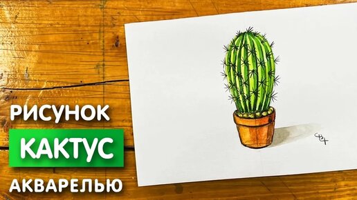 Как нарисовать кактус карандашом и акварелью | Рисунок поэтапно и легко для детей