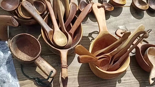 Посуда и другие изделия из дерева, которые продавались в г. Москве, на Крутицком подворье, на фестивале "Московская летопись"