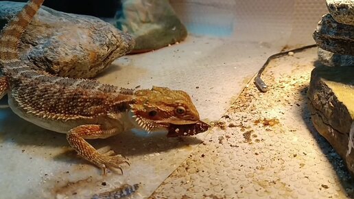 Агамыч ест куколку бражника. Агама чилит на гамаке издавая злобный смех.