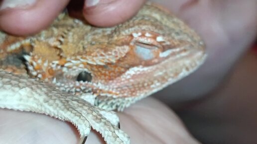 Агамыч наслаждается прикосновением рук и кайфует от поглаживания.