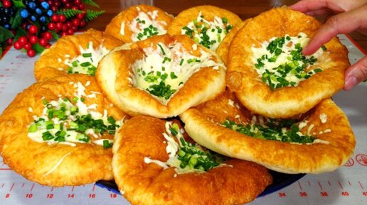 Вкусные пышные нежные пышки с сыром и зеленом луком.