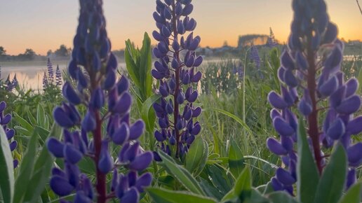 Рассвет на берегу с люпинами