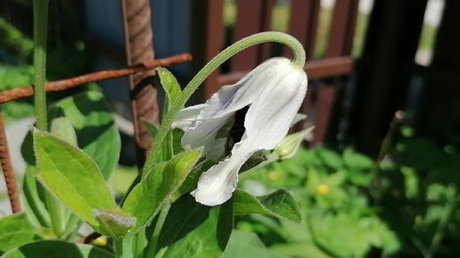 Цельнолистный клематис Хакури (Hakuree)-первый цветочек. Июнь 2023.