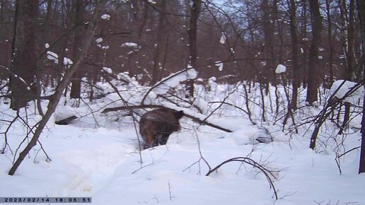 Зимний Кабан! Огромный хряк!