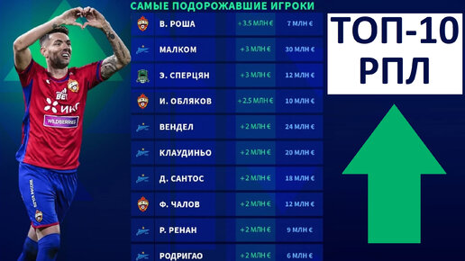 Топ-10 подорожавших игроков РПЛ!