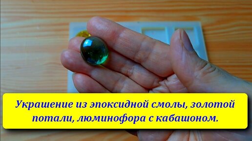 Украшение из эпоксидной смолы, золотой потали, люминофора с кабашоном.
