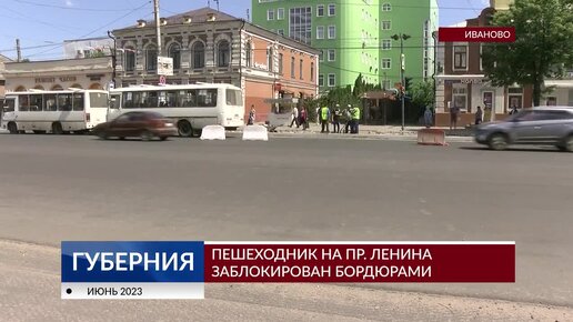 В Иванове на проспекте Ленина заблокировали бордюрами пешеходный переход