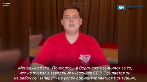 Менеджер извинился за инцидент с военным, которого не пустили в бар в Воронеже