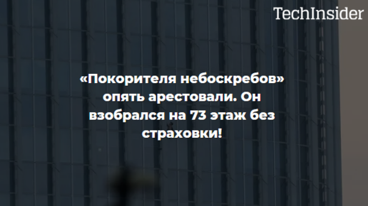 «ПОКОРИТЕЛЯ НЕБОСКРЕБОВ» ОПЯТЬ АРЕСТОВАЛИ. Он взобрался на 73 этаж без страховки!