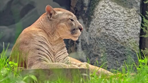 В жару пума Габриэль лениво засыпает под жужжание летних мошек